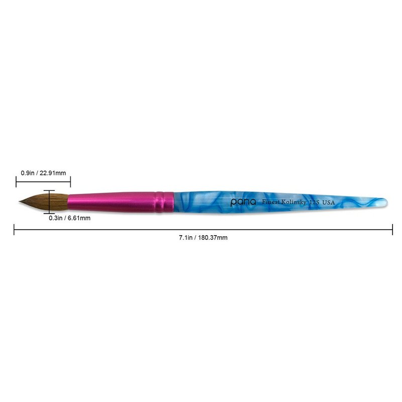 PANA USA Acrylic Nail Brush Pure Kolinsky Hair Acrylic White Swirl Blue Handle with Pink Ferrule Round Shaped - Size 12
