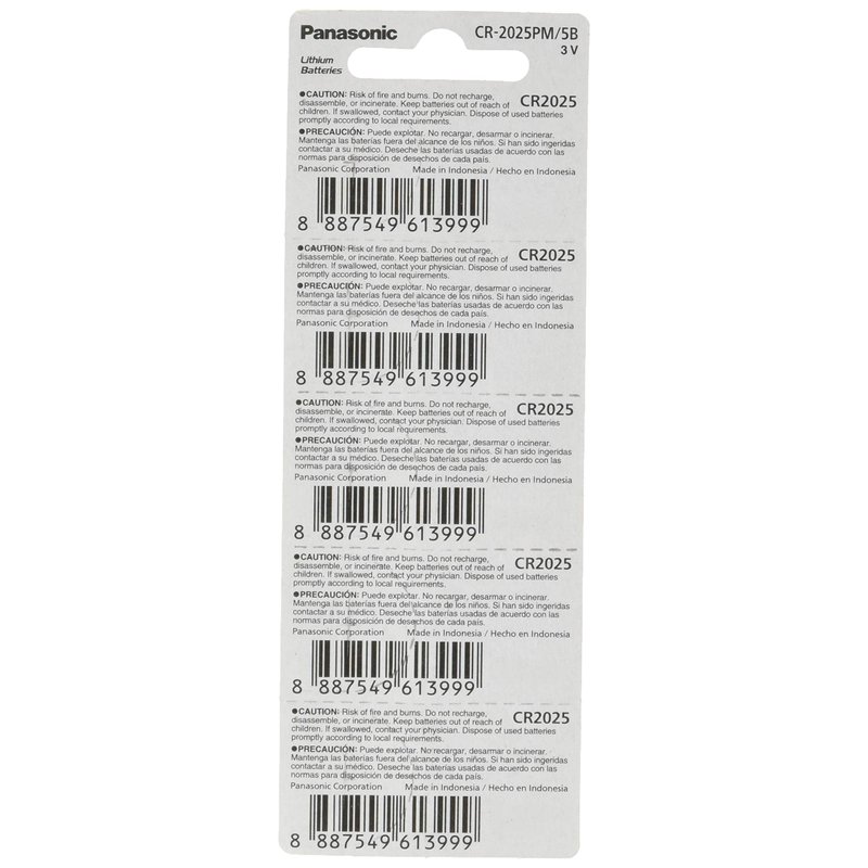 Panasonic CR2025-5 CR2025 3V Lithium Coin Battery (Pack of 5)