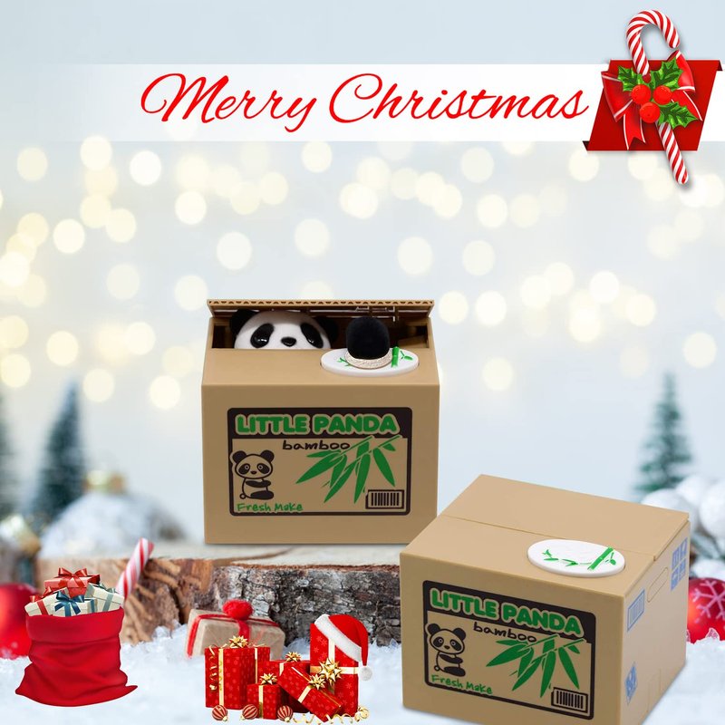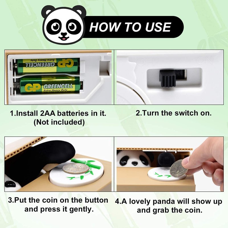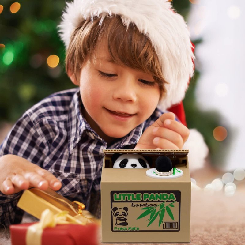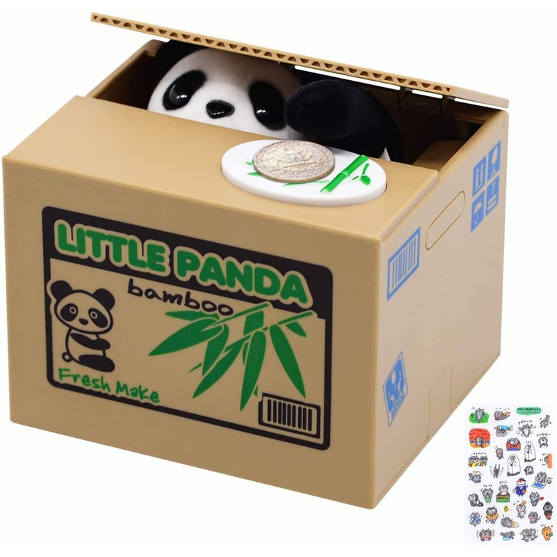 - 😀【Educational】: The panda bank is great for children of all ages and a simple way to teach them how to save up their coins; The mechanical panda that steals the coins is fascinating to children and they will want to do it over and over again