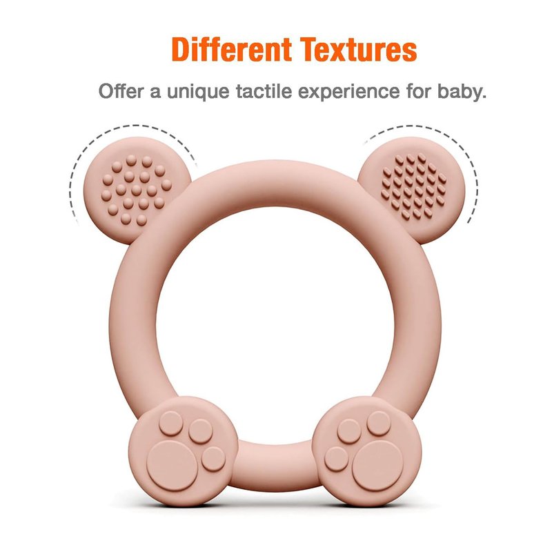 - 【Durability】: Our Bear Ring Silicone Teethers are designed with Premium Textured allows your baby to gnaw and bite at the toy to soothe their aching gums. Despite constant chewing and gnawing, they have held up remarkably well. Easy to clean, dishwasher safe and boil safe