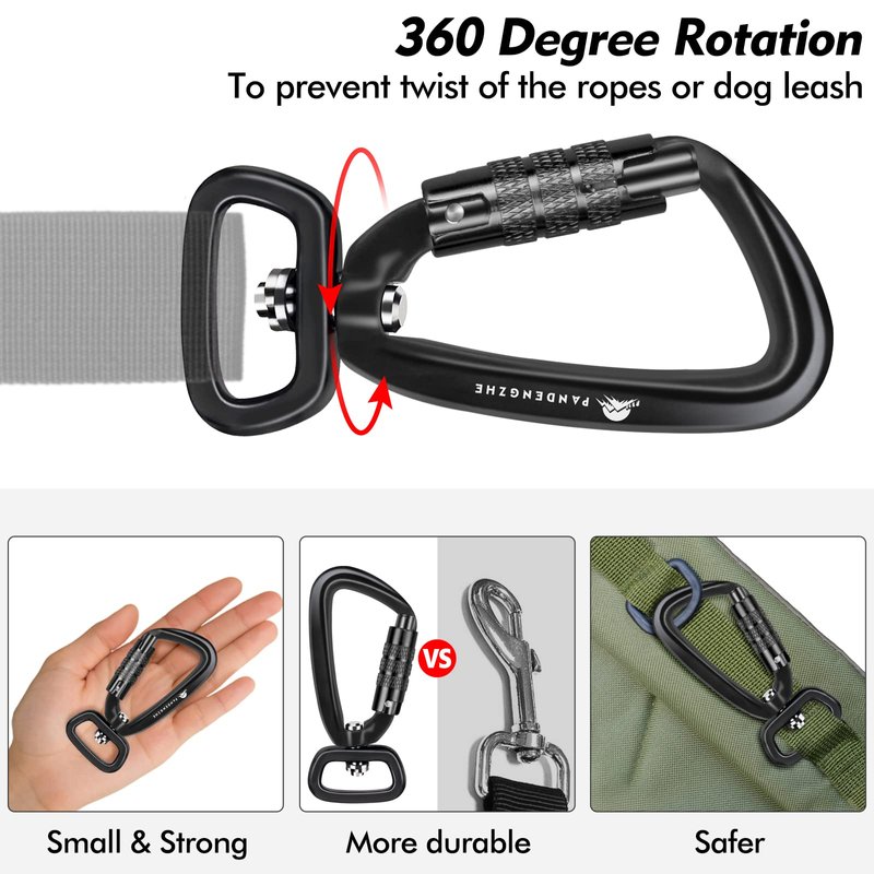 - Swivel Eye Rotating D Ring: Our Carabiner come with Swivel ring, it is more convenient and easy to be used as a pet connecting buckle clip hook, hammock hanging buckle, backpack hook etc.
