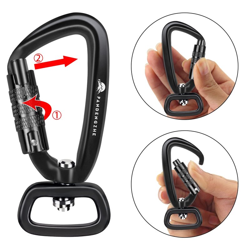- All Purpose - PANDENGZHE locking Carabiner Clips are suitable for securing pets, dog leash harness, camping, fishing, hiking, backpack, paddle, traveling, punching bag, attach sports bottles, keychain, small travel tools, fix heavy object on a pickup truck. Not For Climbing.