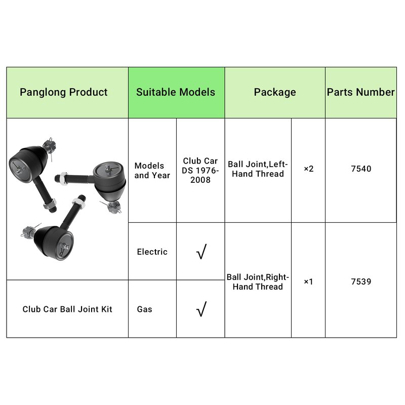 - 【OEM Reference】Ball Joint Left-Hand Thread (included 2 Pcs), OEM #7540; Ball Joint Right-Hand Thread (included 1 Pc), OEM #7539.