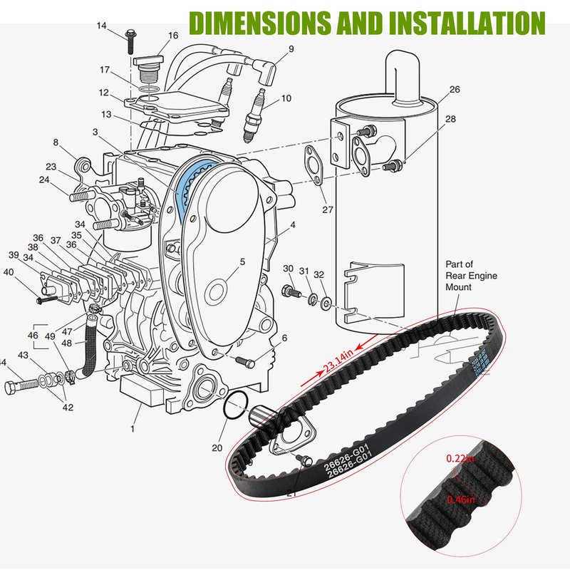 Panglong EZGO Timing Belt Gas Golf Cart 1991-up 295cc & 350cc 4 Cycle Engine 26626-G01
