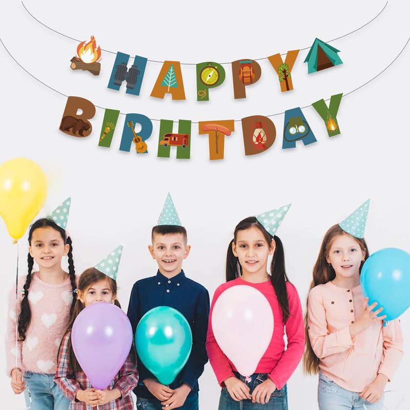 - 【Easy to Hang】 The camping birthday banner can be hung on anywhere you like, such as tree, tent, window, fireplace to decorate your birthday party.