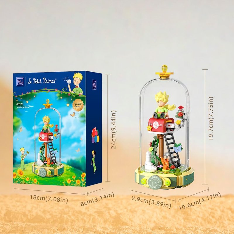 Step into the enchanting world of 'Le Petit Prince' with this delightful Rose Mailbox Building Block Set from PANTASY. Designed with fans of the classic tale in mind, this set beautifully captures the essence of the story with its intricate details and charming features. The highlight of the set is the rotating globe dome that houses Le Petit Prince, his rose, and the iconic mailbox, creating a dynamic and captivating display.