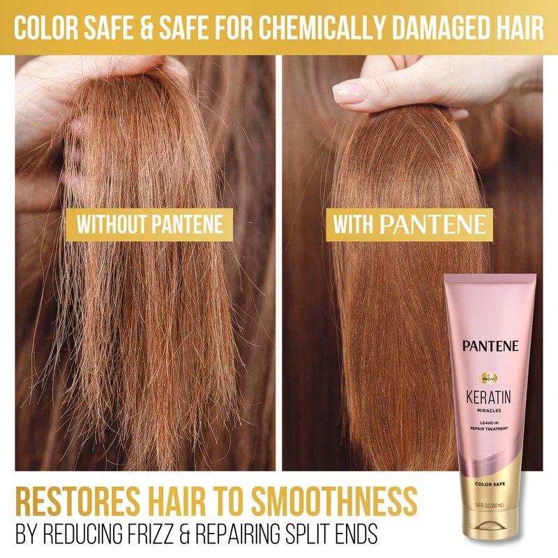 Pantene Keratin Leave-In Conditioner with Argan Oil, Protein Treatment for Dry, Damaged & Color-Treated Hair, Repairs Split Ends & Protects from Damage, Formaldehyde-Free, 8.4 Fl Oz