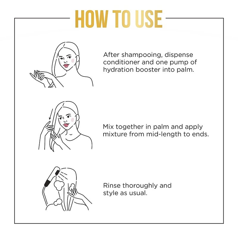 - Add mix-in to conditioner for a boost of hydration to nourish and help repair dry hair