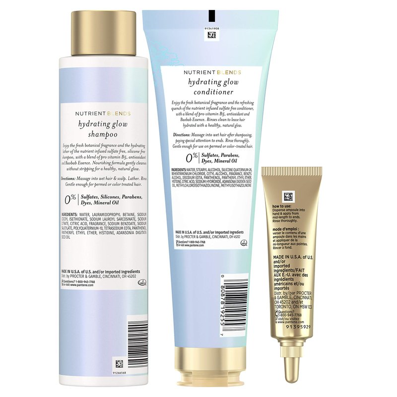 Pantene Shampoo and Conditioner Plus Hair Mask Rescue Shot Treatment with Baobab Essence/Nutrient Blends For Hydrating Glow, White