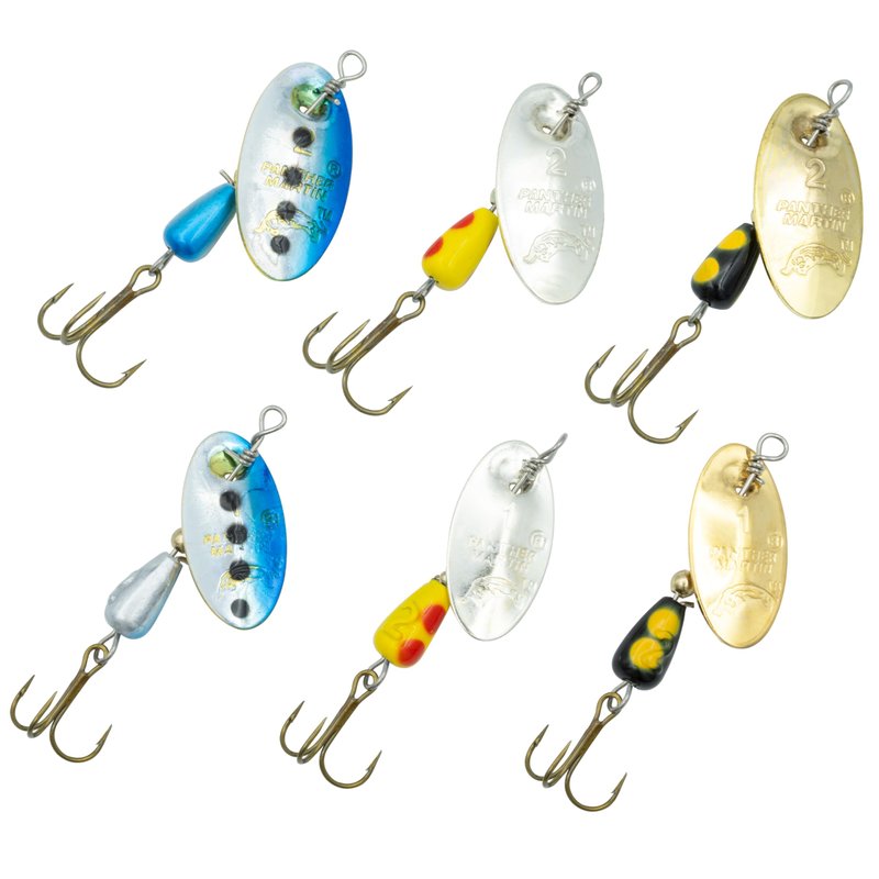 - ✅ FOR CATCHING A VARIETY OF SPECIES ✅ : Panther Martin spinning lures in 6 assorted colors. Convex/Concave Blades Send out Sonic Vibrations that are Irresistible to Fish