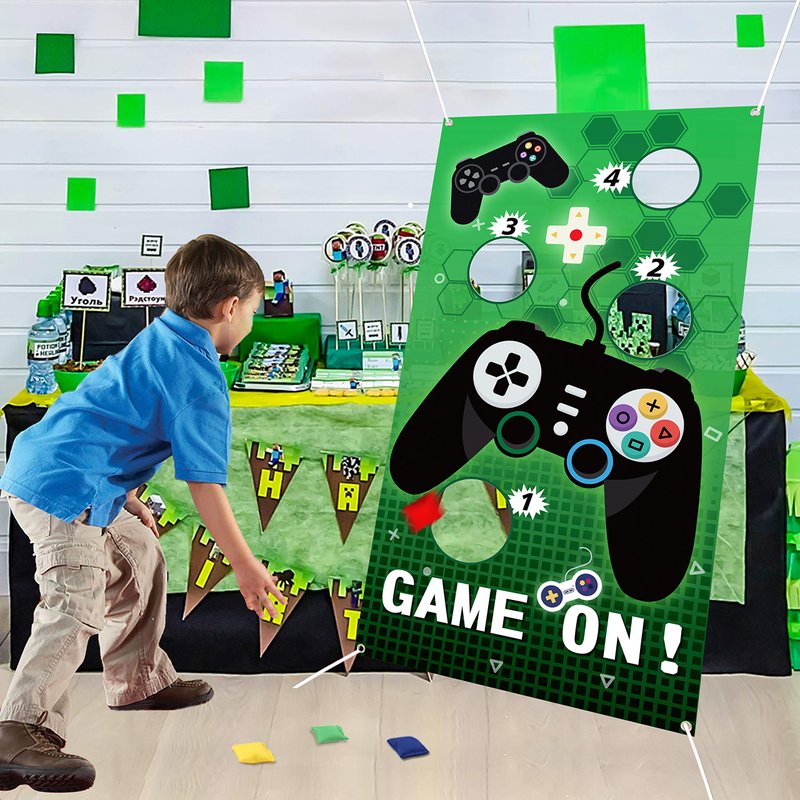 - [Funny Game On Throwing Games] Bean bag toss game is popular with kids and it is an excellent party games for the party. It could not only kill kids’ time but also brings kids and adults more fun. Besides, this game is not limited by place, you can set it as indoor or outdoor game! Our toss game banner is game on themed banner which is specially designed for video game party. If you are going to throw a video themed party, do not hesitate to choose it!