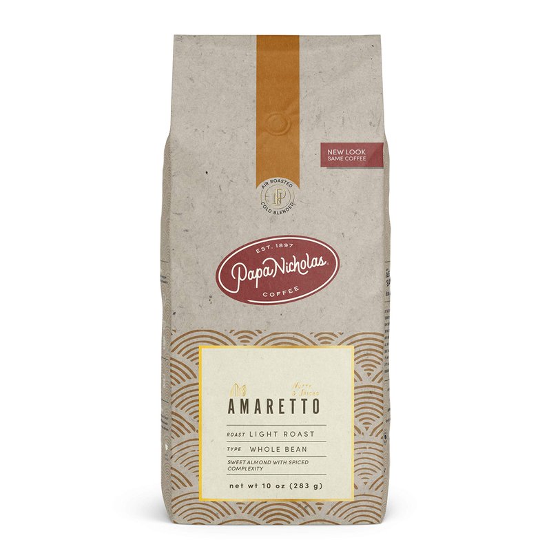 PapaNicholas Coffee Whole Bean Coffee, Amaretto, 10 Ounce