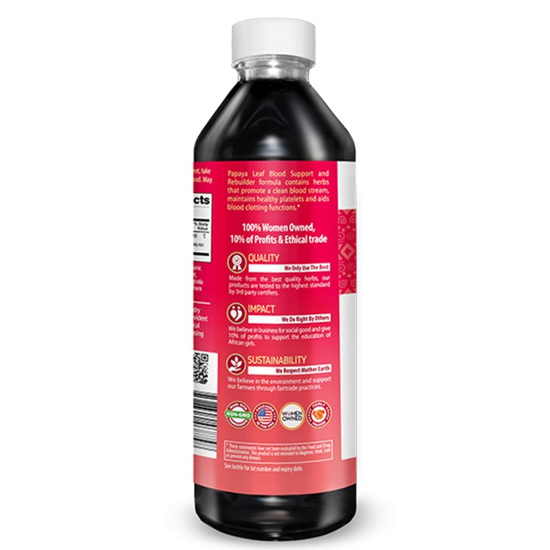 - 💚 Blood Platelet and Immunity Support- Papaya leaves (paw paw) may naturally boost production of blood platelets. Papaya leaf contains the enzyme Fibrin which is great for blood platelet support. Compared to Papaya enzymes chewables our blood support liquid juice formula is complete with phytonutrients that work together synergistically to support healthy wellbeing - not synthetically made chemical papain enzymes. Our blood support super fruit papaya enzymes is 100% pure.
