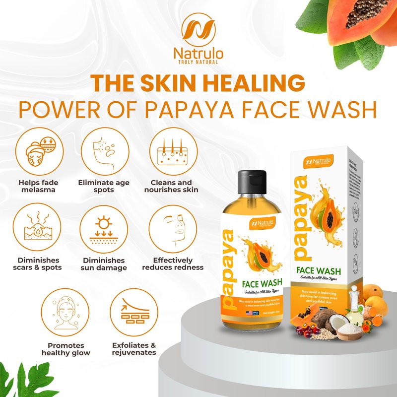 - SOOTHING, CLEANSING, REJUVENATING: Papaya face and body wash effectively relieves redness, scars & spots, targets discoloration & calms overworked skin as it cleanses it. Papaya body wash is cleansing, hydrating & brightening.