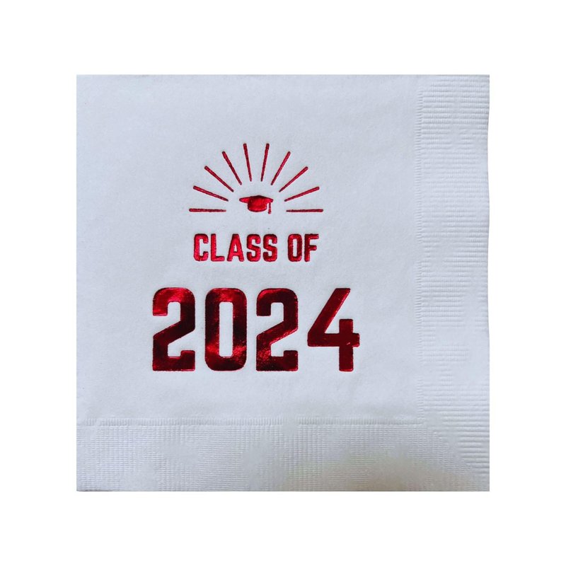 - GORGEOUS RED FOIL PRINTING: Class of 2024 is printed on every napkin in metallic hotstamp foil.