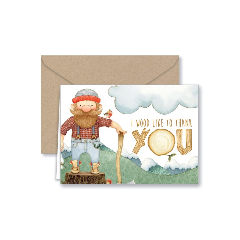 Paper Frenzy Lumberjack Thank You and General Note Cards and Kraft Envelopes - 25 pack