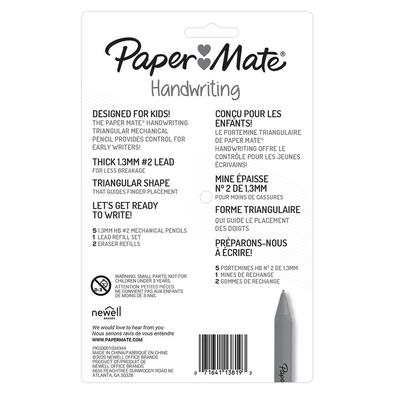 Paper Mate Handwriting Triangular Mechanical Pencil Set with Lead & Eraser Refills, 1.3mm, Fun Barrel Colors, 8 Count