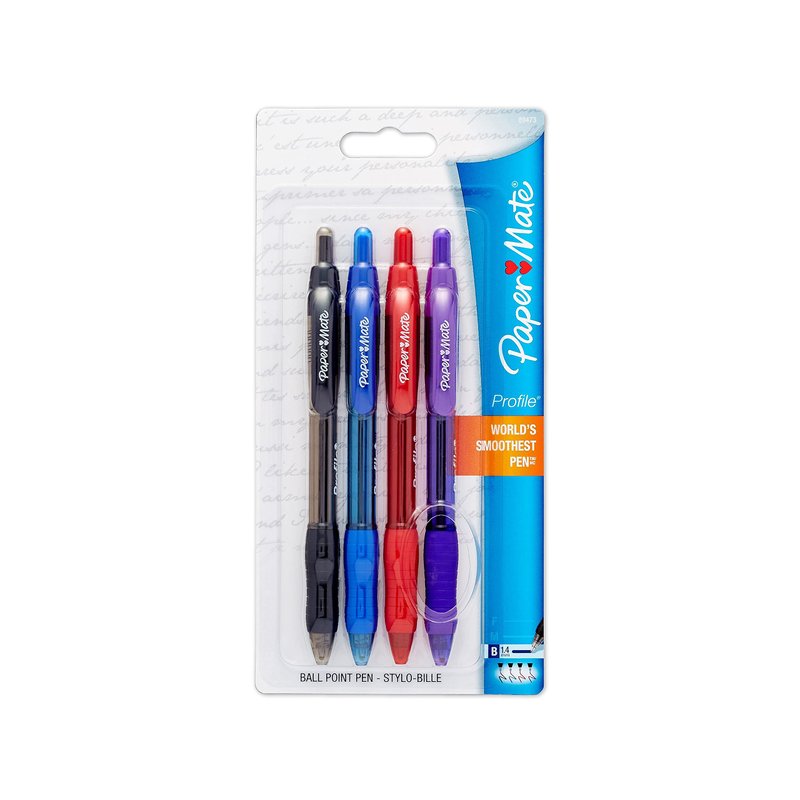 - Smooth writing performance with soft grip make for ideal comfort while writing. 1.4 mm extra-smooth writing system with a soft comfort grip provides an effortless writing experience. 4 ink pens includes 1 each of black, blue, red and purple.