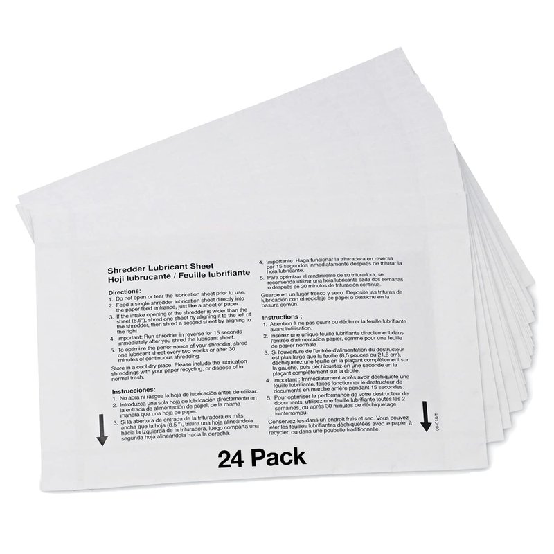 - Shredder lubricant sheets reduce blade friction for optimal shredder performance.