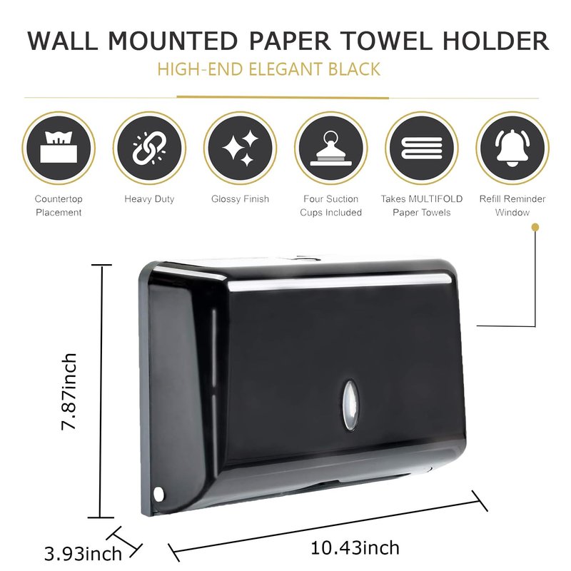 - 【Wall Mounted Napkin Dispenser With Visible Cover】This multi fold paper towels dispenser with transparent black plastic cover to let you know when the paper will run out.