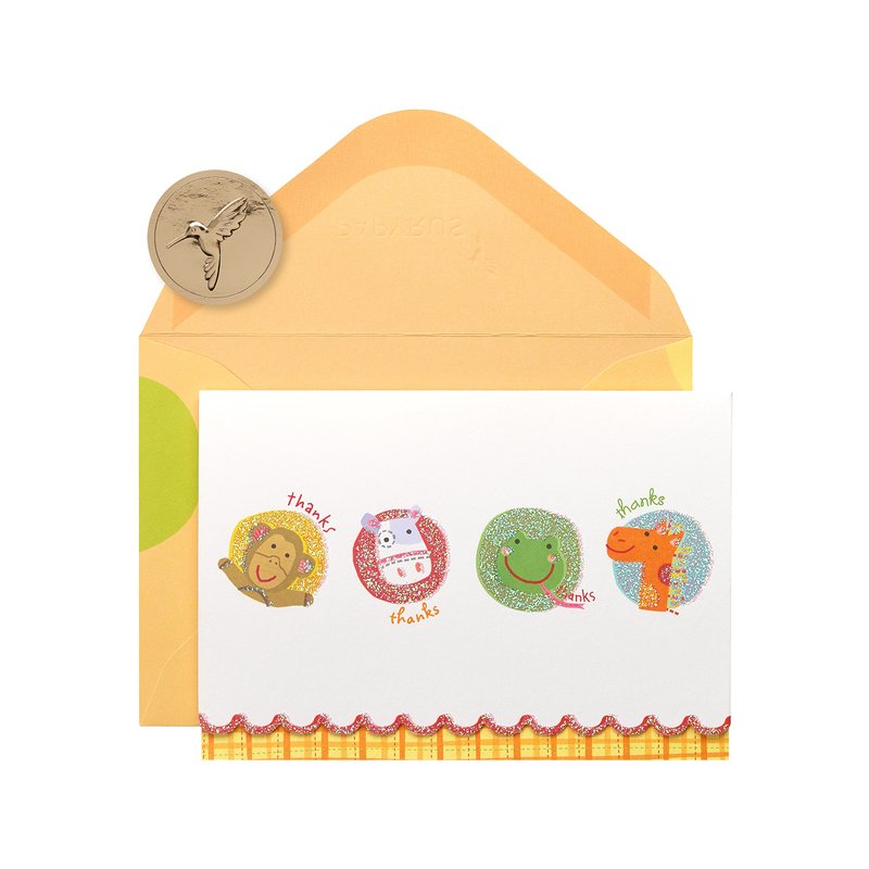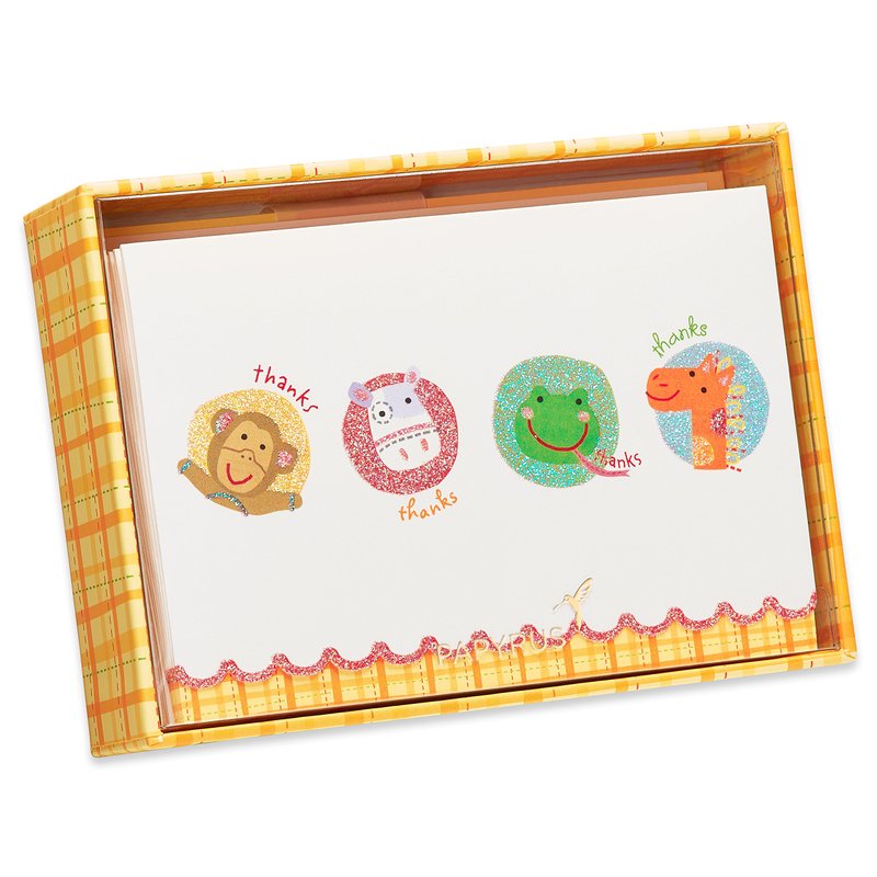 Papyrus Thank You Cards with Envelopes, Animals with Glitter (14-Count)