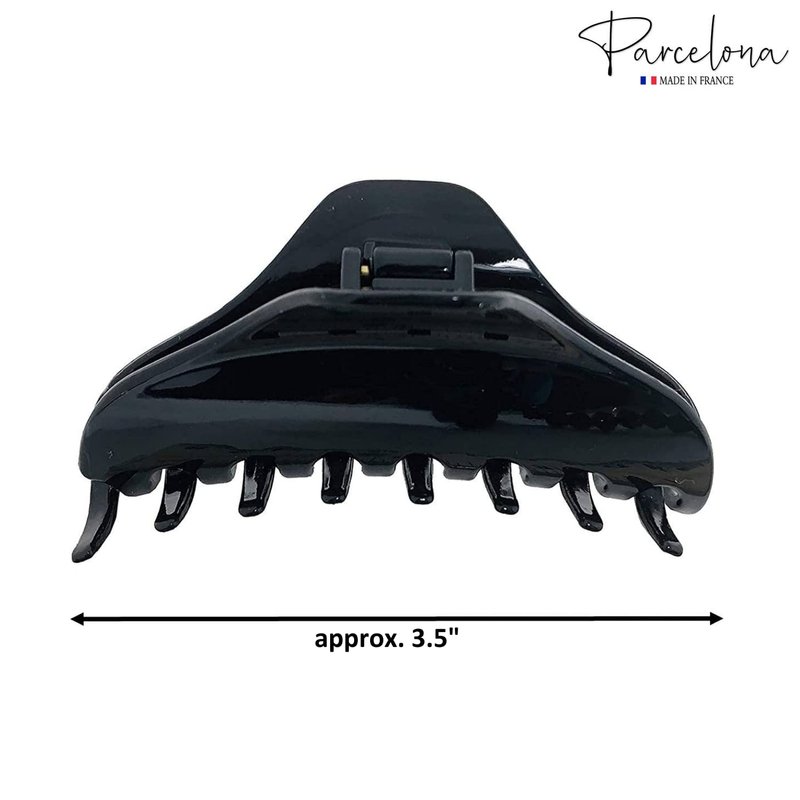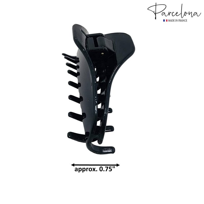 Parcelona French Boss Thin and Narrow Glossy Black Medium Covered Spring Jaw Hair Claw Clip Clutcher Clamp for Fine and Long Hair Types