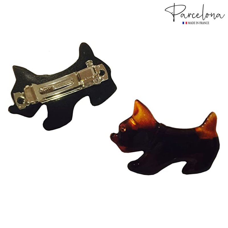 Parcelona French Dog Small 2 Inch Celluloid Acetate Black and Tortoise Shell Brown Automatic Hair Clip Hair Barrettes