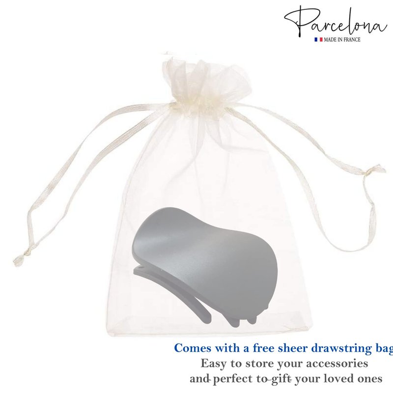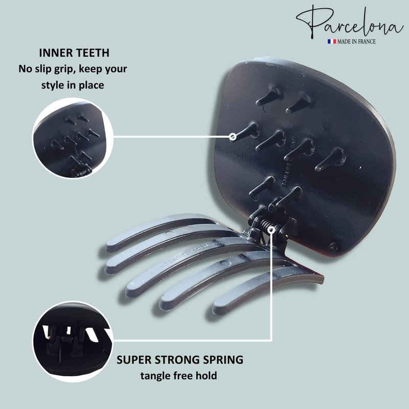 Parcelona French Onde Round Black Matte Finished Celluloid Side Slide in Secure Grip Hair Updo Yoga Hair Claw Clip Clamp Clutcher - 2 3/4 Inch