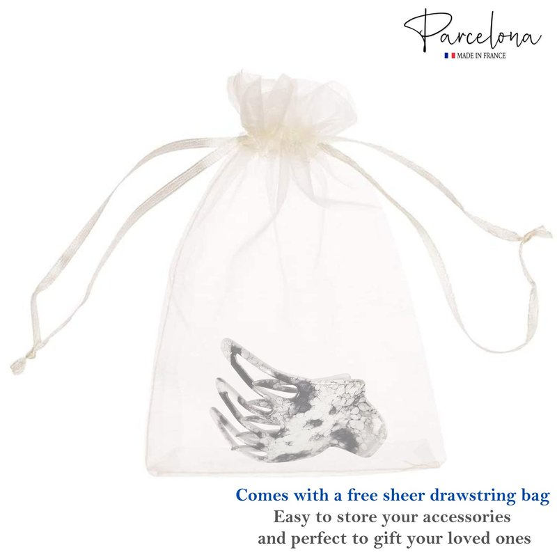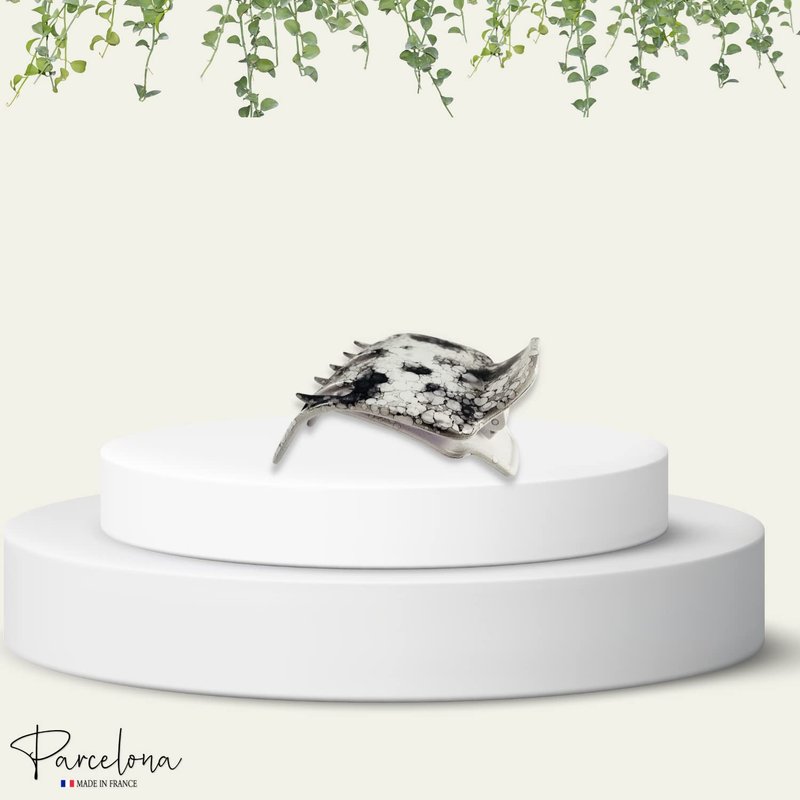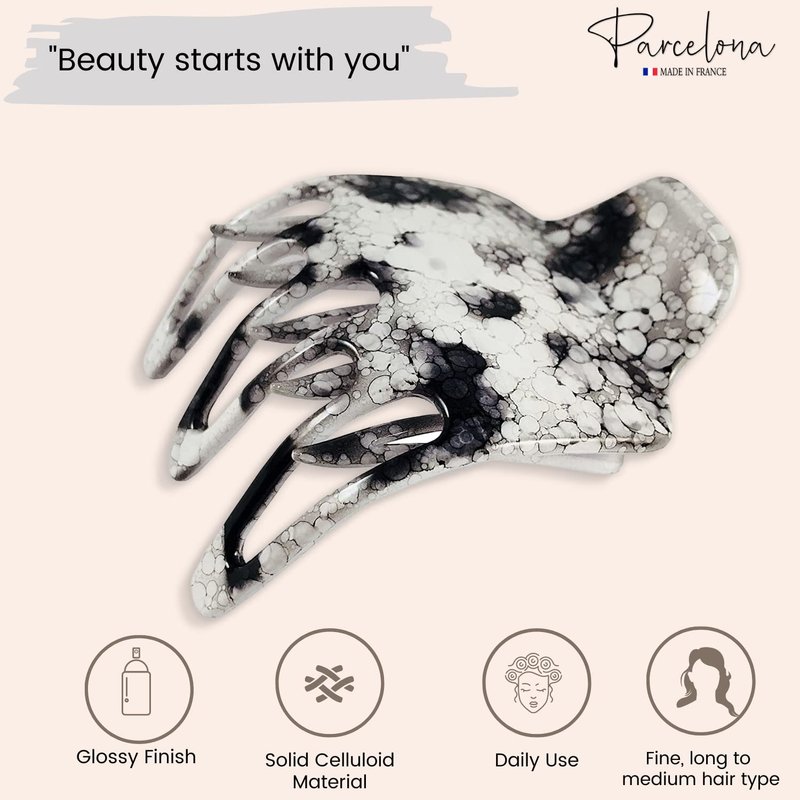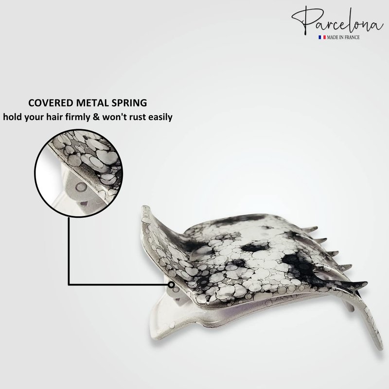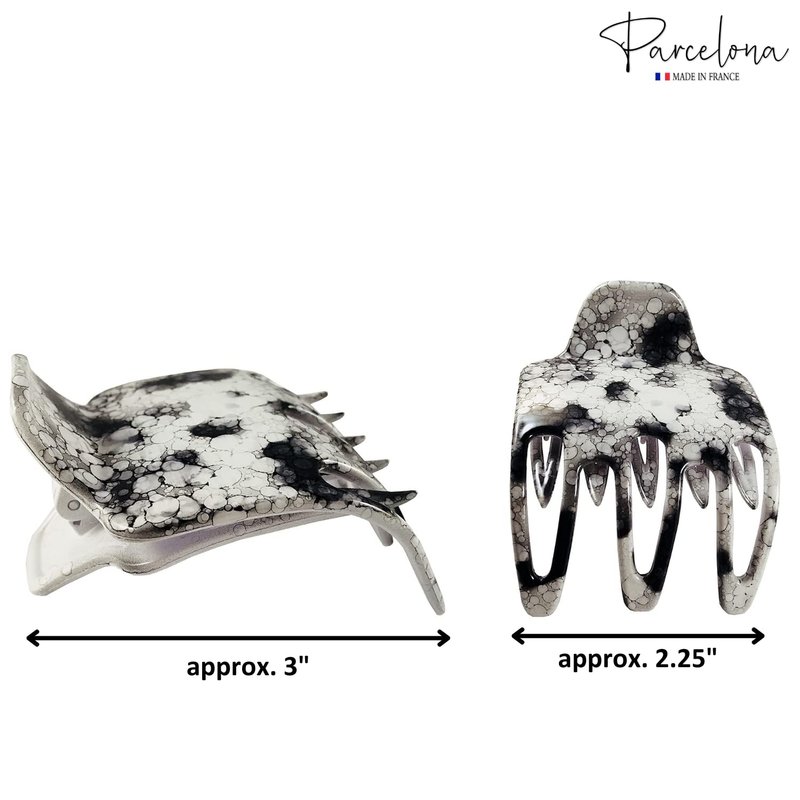 Parcelona French Paw White Black Wide Side Slide In Jaw Yoga Hair Claw Clip (White Black)