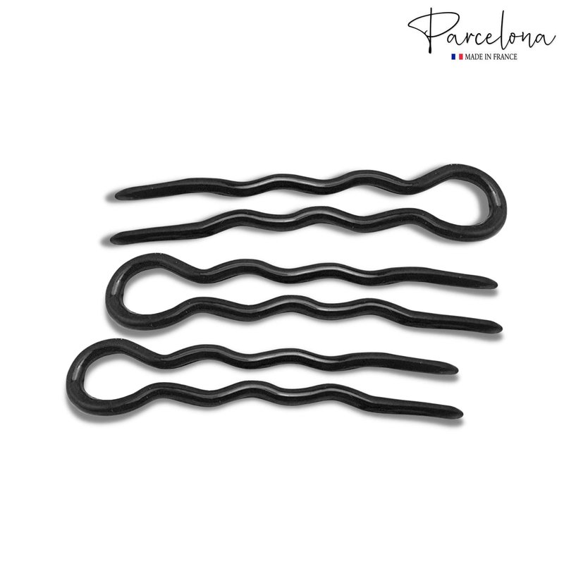 Parcelona French Slick Black Small Wavy 3 Inch U Shaped Hair Pins for Fine Hair Types (3 Pins) (Black)