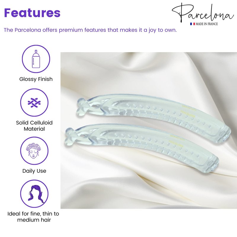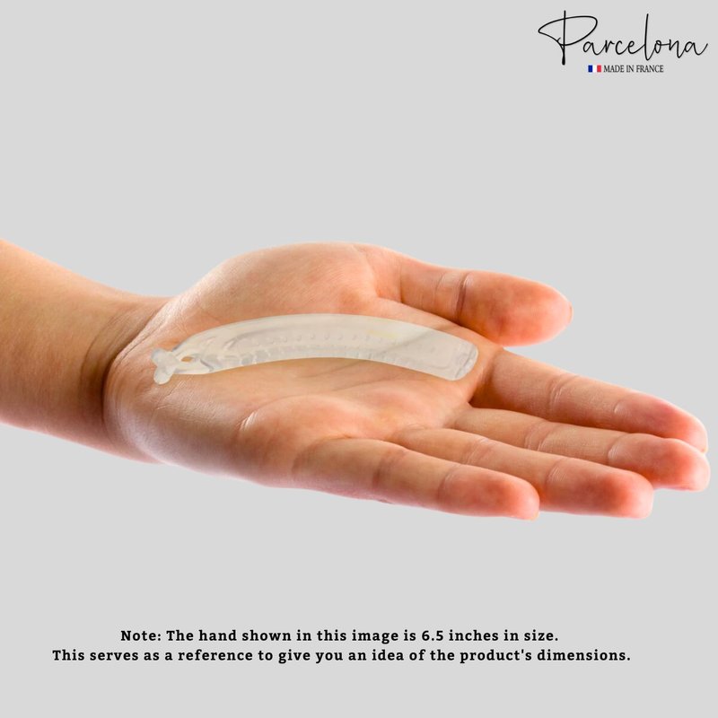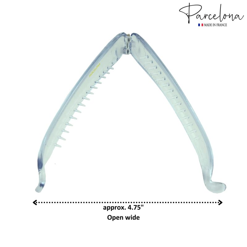 Parcelona French Small 3 ¾” Celluloid Set of 2 French Banana Hair Clip Flexible Ponytail Holder Fashion Durable Styling Paris Hair Accessories for Women, Made in France (Clear)