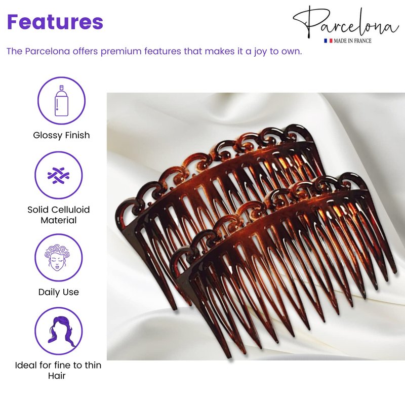 - This hair accessory is made in France with celluloid acetate. Our Parcelona hair ornaments are made in Europe, perfectly polished for a splendid finish, distinctive patterns, and designs.