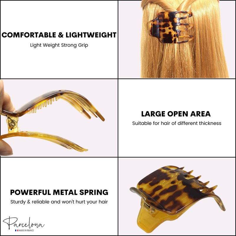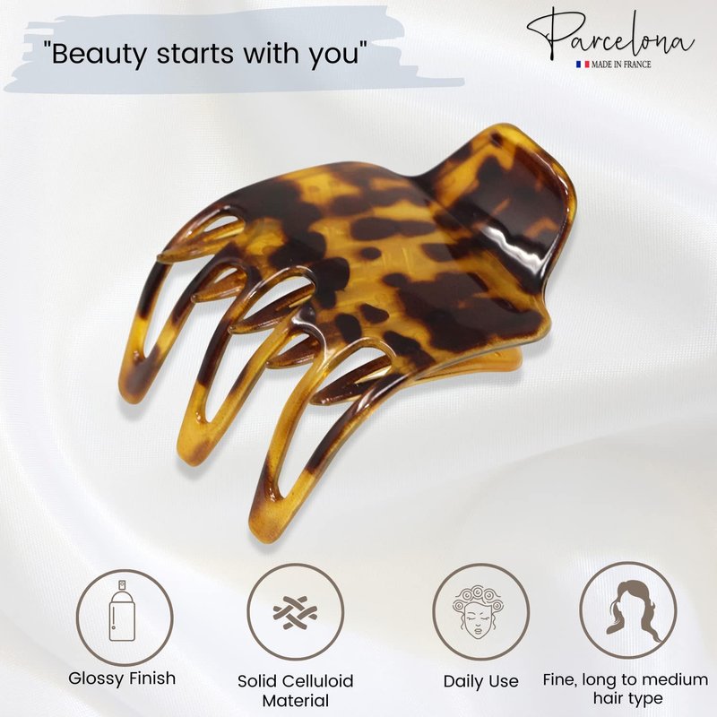 All hair accessories by Parcelona are made from nature- friendly cellulose acetate, perfectly polished for a splendid finish, distinctive patterns, and designs. Create and adorn a variety of hairstyles with this unique and stylish claw. It gives you quick styling solutions, snug fit, do not twist, pull or damage your hair. It is easy to use and release, very lightweight and does not feel heavy on your hair. This french paw claw is good for everyday wear, yoga sessions, workouts and gifts