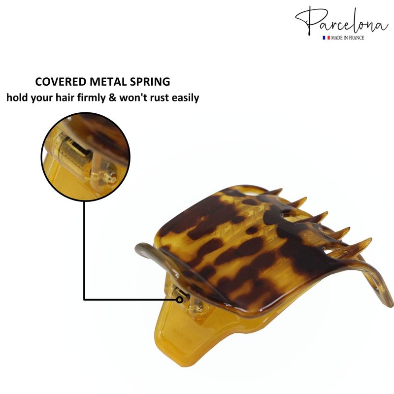 Parcelona French Wide Paw Savana Light Shell 2 ¼” Celluloid Covered Spring Side Slide In Jaw Yoga Hair Claw Clip for Women and Girls