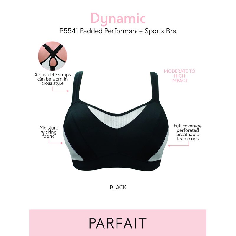 PARFAIT Women's Dynamic P5541 Full Bust Bounce Control Sports Bra-Black-34E