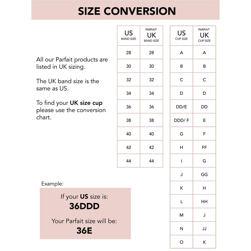 - FIT TIP: PARFAIT products are listed in UK SIZING. Please view our size chart to find out your UK size before your purchase.