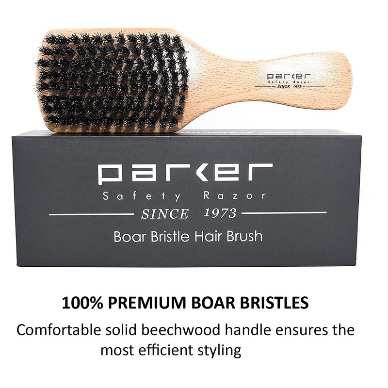 Parker 100% Boar Bristle Hair Brush, Natural Beechwood Handle - Packaged in a Gift Box