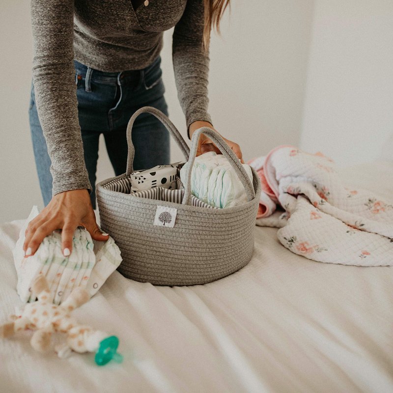 The Parker Baby Rope Diaper Caddy is designed to simplify the diaper changing process. The diaper storage basket features 3 interior compartments and a long carrying handle for maximum versatility.