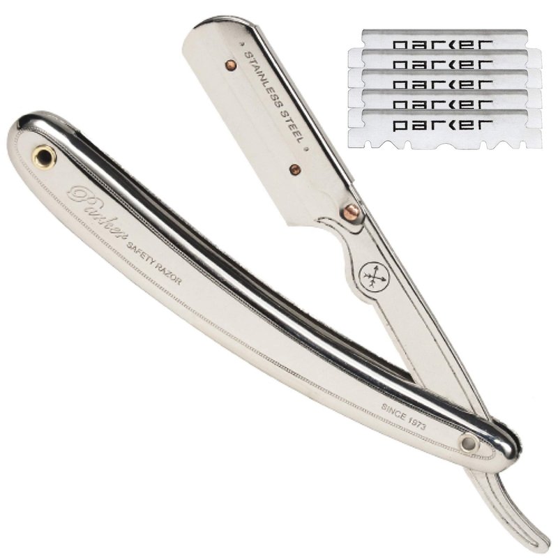 Parker Men’s SR1 Stainless Steel Straight Edge Razor With 5 Parker Platinum Blades