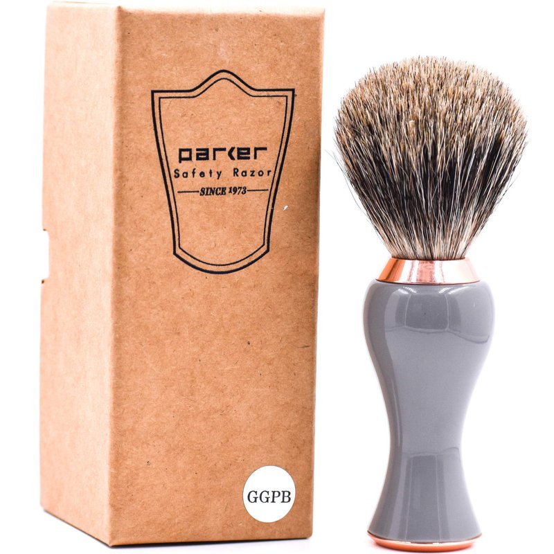 - QUALITY CONSTRUCTION: Handmade for outstanding quality and performance, Parker’s soft shave brush uses the finest materials available. Featuring a heavyweight deluxe gray and rose gold handle, this brush is ergonomically designed to fit both large and small hands and to also easily create a lather with a shallow shave bowl or deep shave mug.