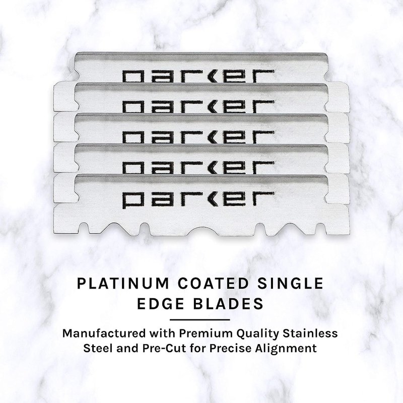 - 5 PREMIUM PARKER PLATINUM BLADES INCLUDED: This straight blade/straight edge razor comes with 5 Premium Parker Platinum blades. However, you can use a professional half blade razor blade, or you can snap any standard double edge razor blade in half and insert it in the blade holder for use.