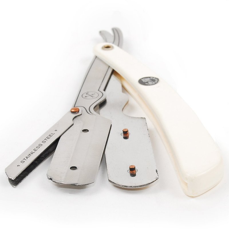 - STURDY CONSTRUCTION: Designed to provide quality shaving, this straight razor has a stainless steel blade arm and a handle made of durable white resin.