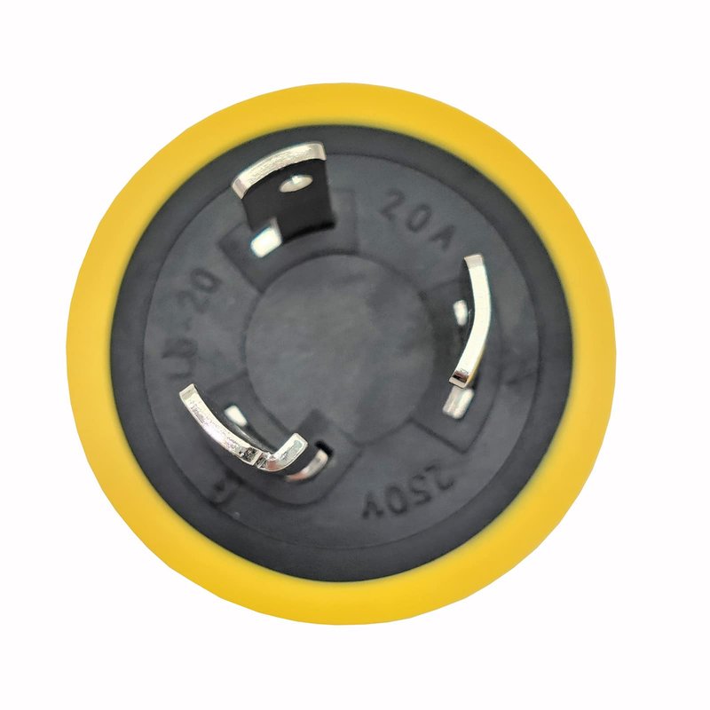 - Locking 3-prong 20 AMP 250 Volt NEMA L6-20 male plug.