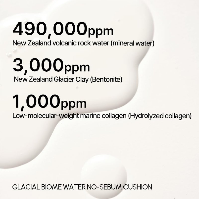 - A multi-use liquid type sebum controler cushion that absorbs excess oils to keep the skin smooth and matte, formulated with Iceland glacial water filled with mineral.