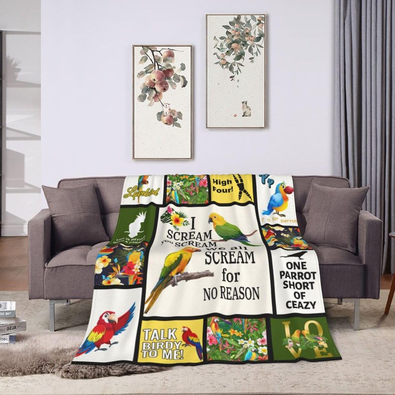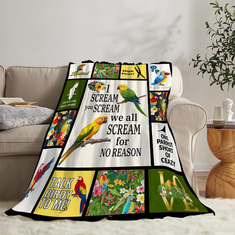 Parrot Blanket Soft Cozy Parrot Bird Throw Blanket Gift for Women Girls Super Plush Warm Parrot Stuff Lightweight Fleece Flannel Gift Blankets for Kids Adults 50"X40"