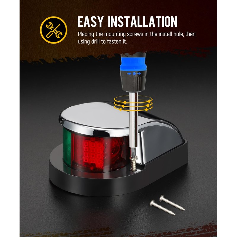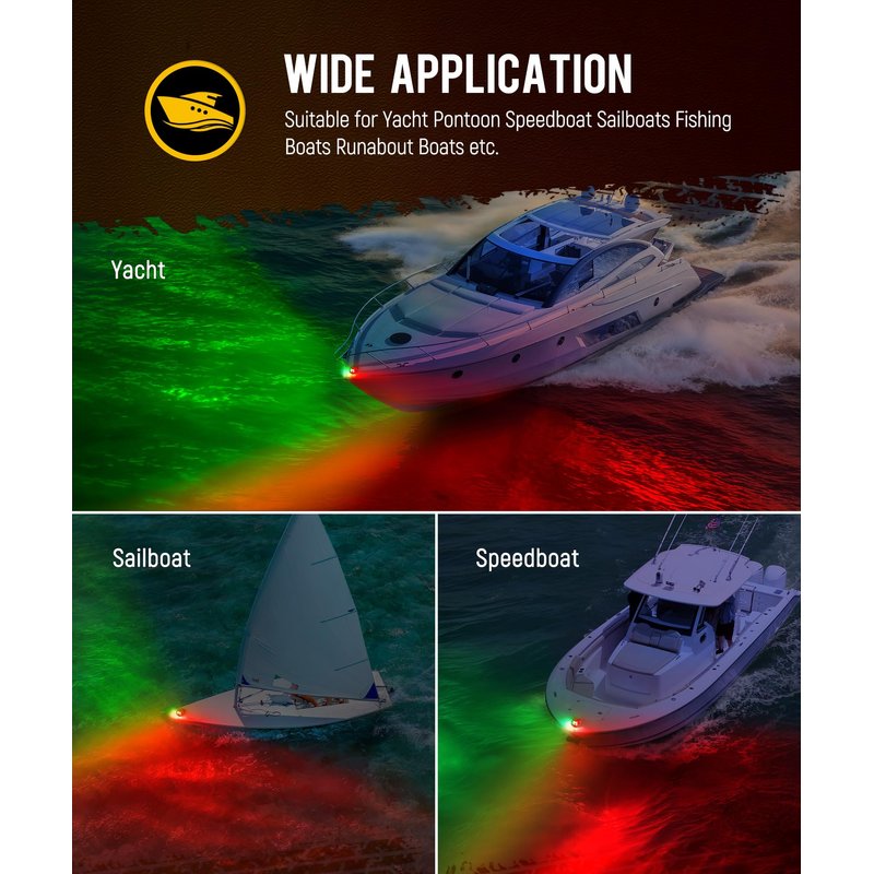 - [PerdurableMaterial] Made of high quality engineering ABS plastic base and stainless steel housing construction, light weight and long lasting life; The bi-color navigation light uses innovation LED optical design and it guarantees the bright level of the navigation light but also the it can maximum reduce the heat of the light to last its’ lifetime;
