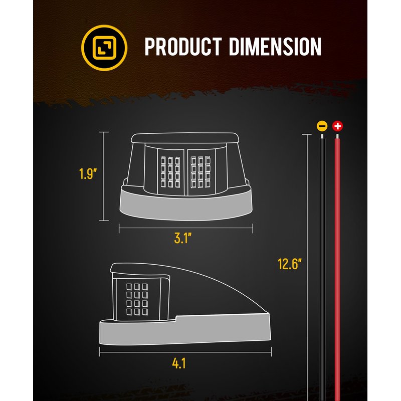 - [IP67 Waterproof] No need to worry about the pouring rain or strong wind any more, it can bear the pouring rain or strong wind during the voyage;Size: 4.1"L x 3.2" W x 1.9" H with 7.3" wiring pigtails. Center to Center mounting holes: about 2.75; Easy to install and use: Black is Ground and red positive;