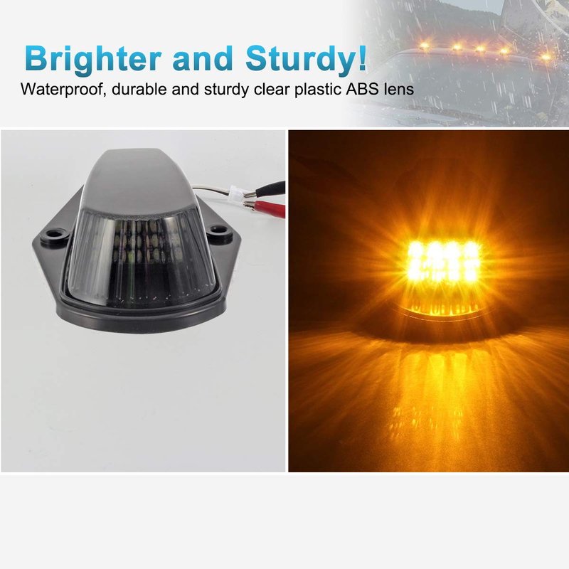 - Package Includes 5 Pieces Smoke Lens Amber Led Cab Roof Running Light Clearance lamps Assembly + 1 Set Wiring Harness Pack. Foam gaskets and Stainless steel screws are included for complete mounting and make it seal well;
