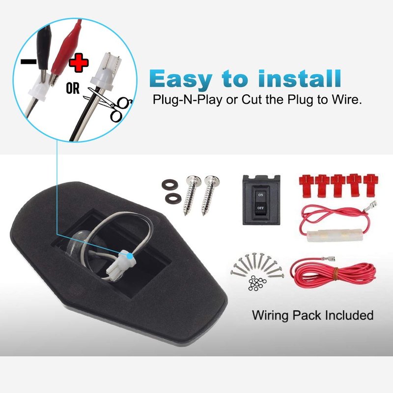 1 x Wiring Pack (Switch x 1, Short Wire with Fuse x 1, Long Wire x1, Metal Screws x 10, Plastic Ring x 10)