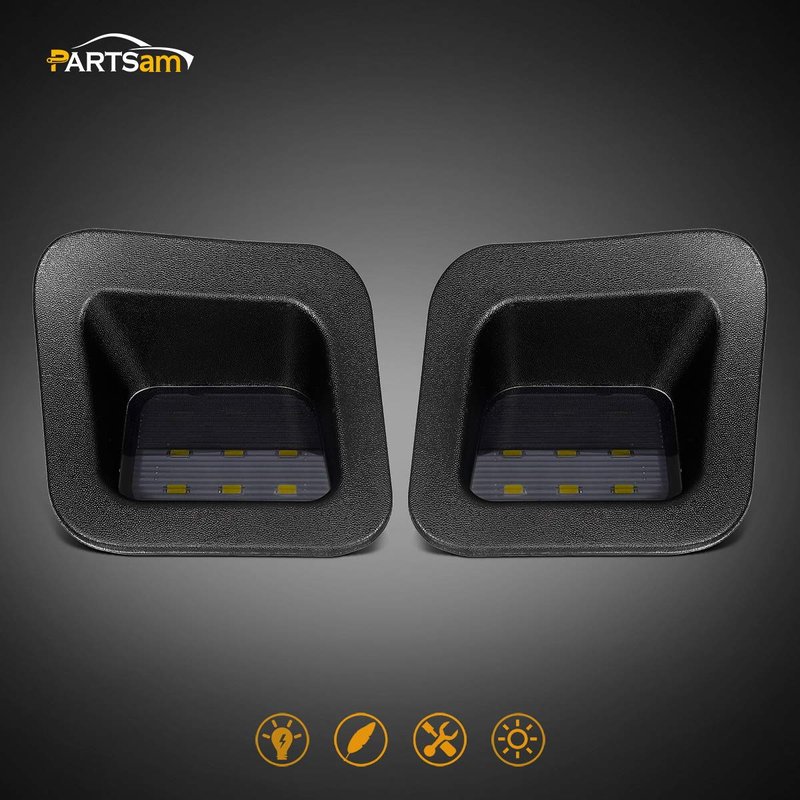 Partsam Full Led License Plate Lights Lamp Assembly Smoke Black Housing Compatible with Dodge Ram 1500 2500 3500 2003-2018 Pickup Truck Rear Step Bumper Replacement, Pack of 2